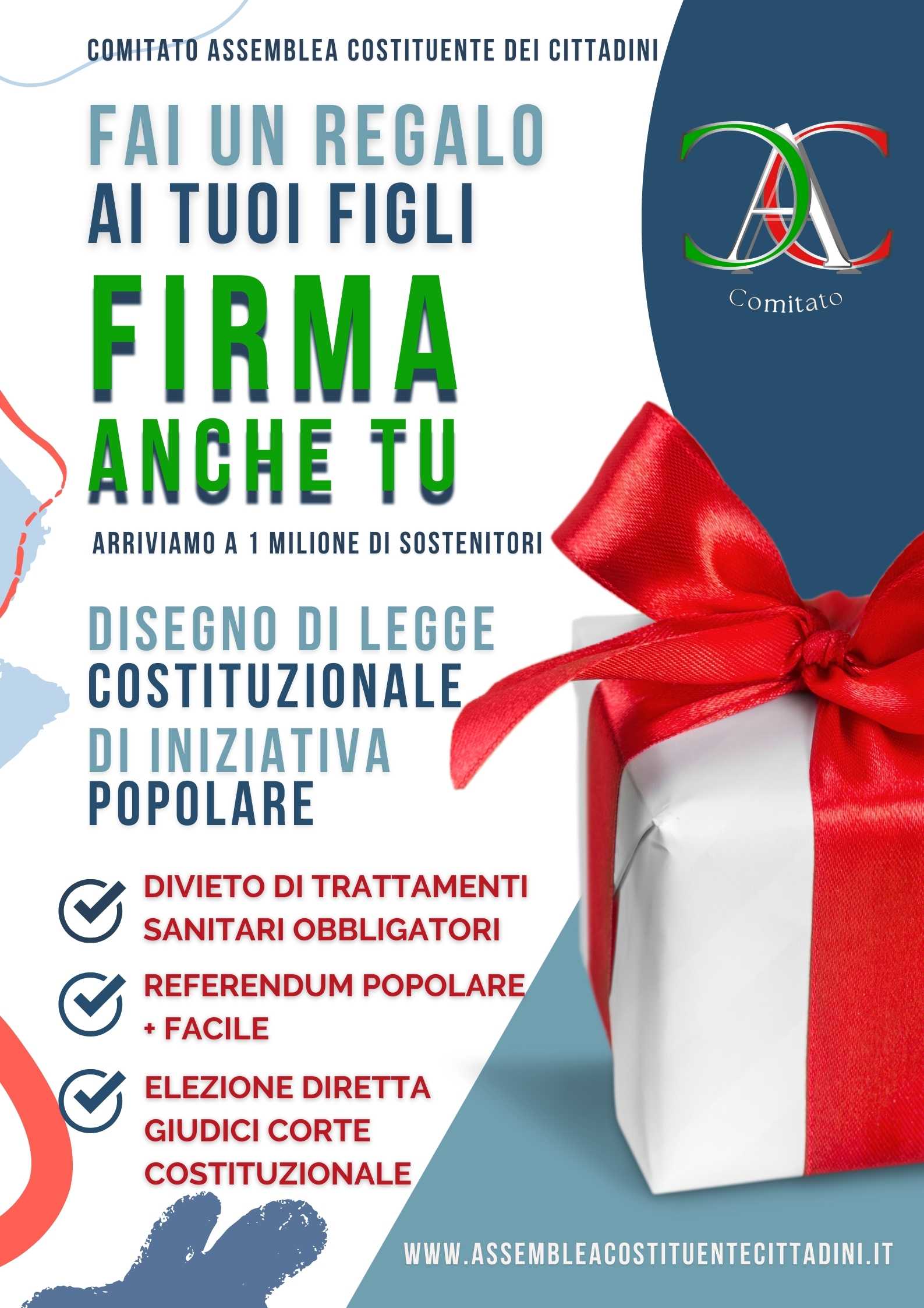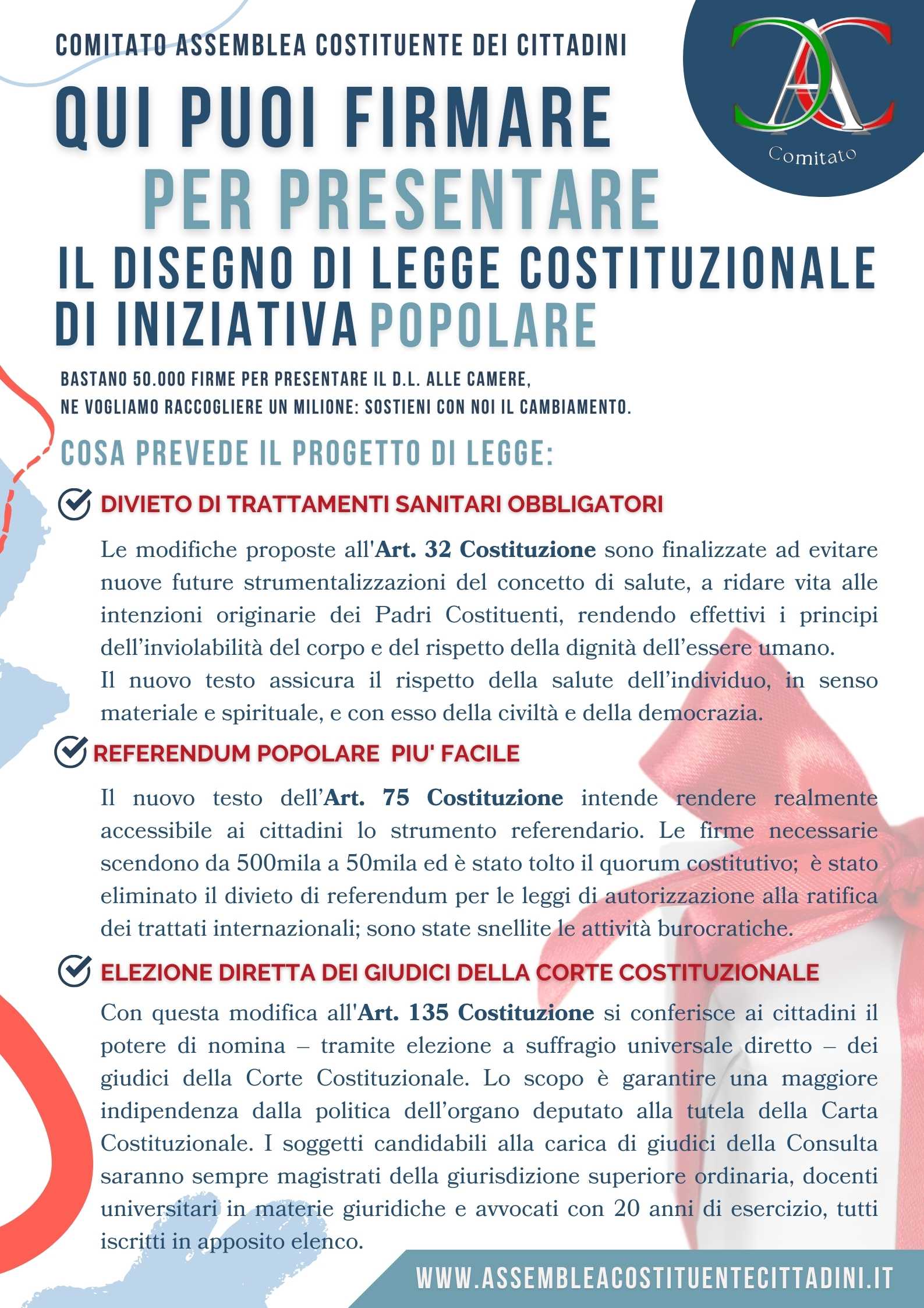 Raccolta firme per la proposta di legge di iniziativa popolare avente ad oggetto “Modifiche agli articoli 32, 75 e 13ostituzione e alla legge costituzionale 25 Maggio 1970,n. 352”.5 della C