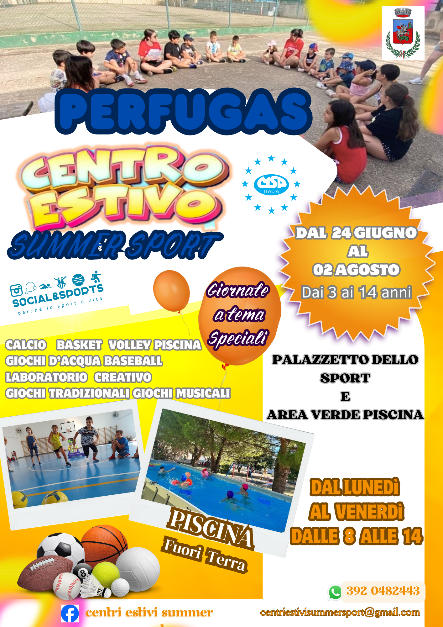 Aperte dal 7 Giugno le iscrizioni per il Centro Estivo “Summer Sport” in favore dei minori fascia 3/14 anni.